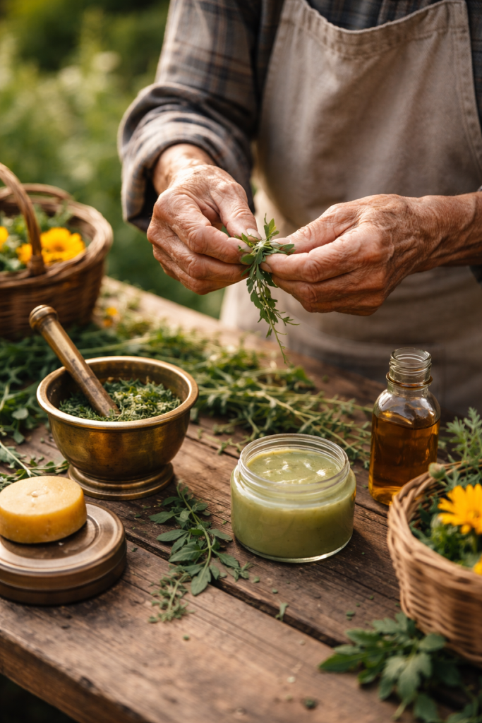 Cuentan que a comienzos del siglo XX, cuando los remedios caseros formaban parte del día a día, empezó a elaborarse una crema espesa y reconfortante a base de aceite de oliva, cera de abeja y plantas aromáticas. No tenía nombre comercial, ni etiqueta, ni ambición alguna más allá de aliviar una quemadura, calmar una grieta o proteger la piel castigada por el trabajo y el clima.